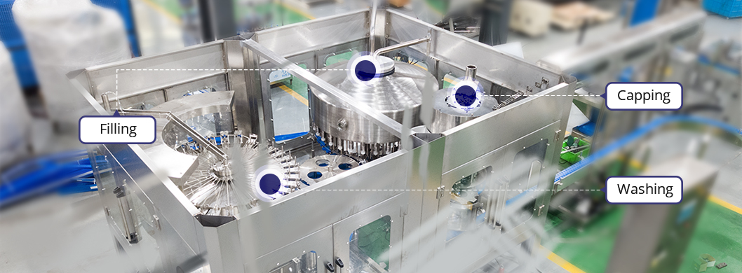 灌裝線可以通過(guò)更換少量備件,將天然泉水,純凈水,碳酸水,調(diào)味水注入PET瓶中。 | 灌水線的生產(chǎn)能力通常在1,000-36,000bph,可提供0.25-2.5L PET瓶。 | 自動(dòng)灌裝機(jī)采用沖洗/灌裝/封蓋三合一技術(shù),PLC控制,觸摸屏,主要由SUS304 / SUS316制成。 |